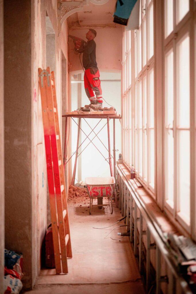 … originale Gründerzeitdetails bleiben erhalten und schaffen so eine Verbindung von historischem Charme und moderner Arbeitswelt.